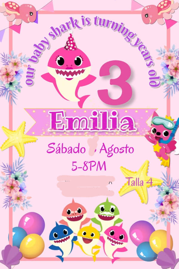 Invitación digital para fiesta infantil babyShark. Ideal para eventos llenos de agua y color.